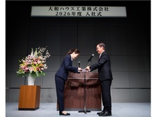 歓迎の挨拶で、代表取締役会長の芳井は「働く上での『夢』を決めて、それを追いかけることが大事。これから社会に向けてしっかりと羽ばたいてほしい」と述べ、新入社員への期待を伝えました。また、代表取締役社長の大友は「創業70年を超えた今も、大和ハウスはベンチャー企業。チャレンジ精神を忘れず、新しいことに常に取り組んでほしい」と、激励しました。