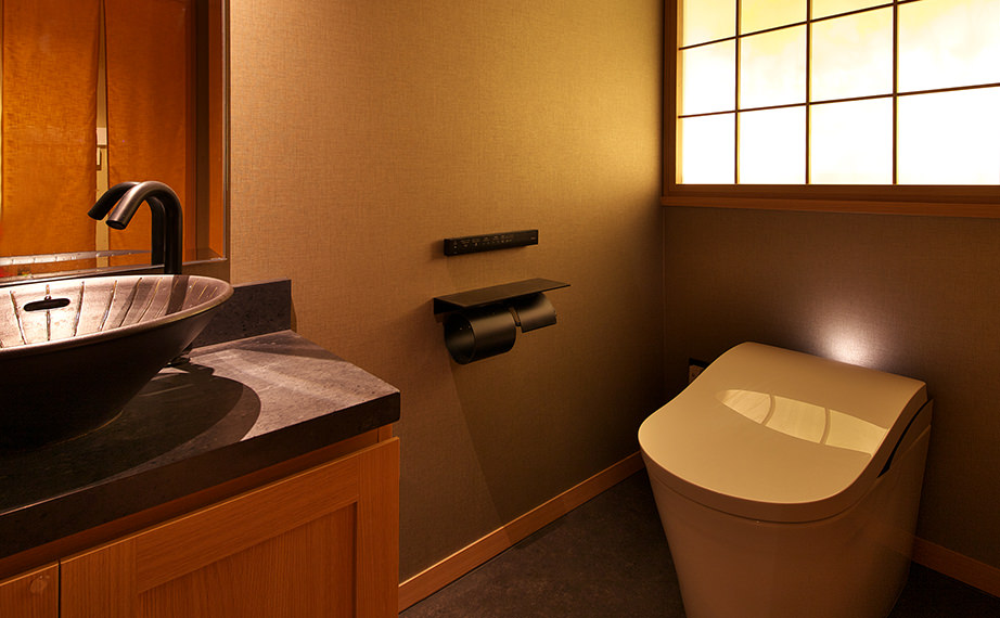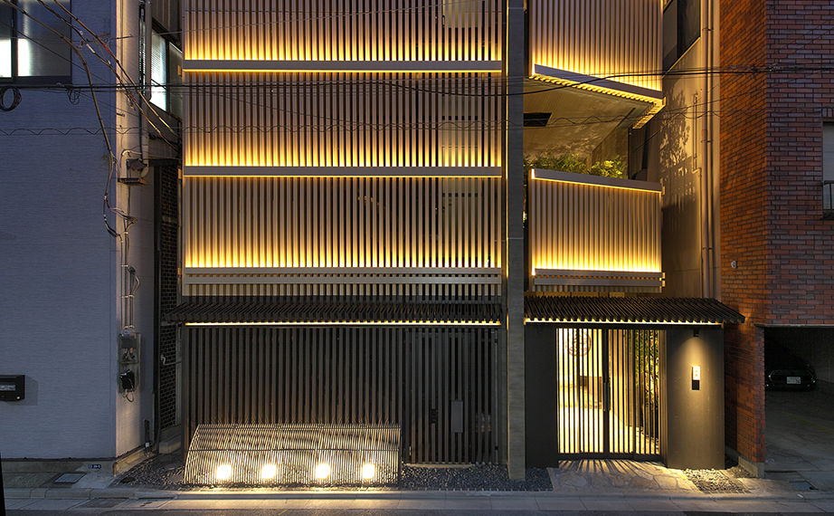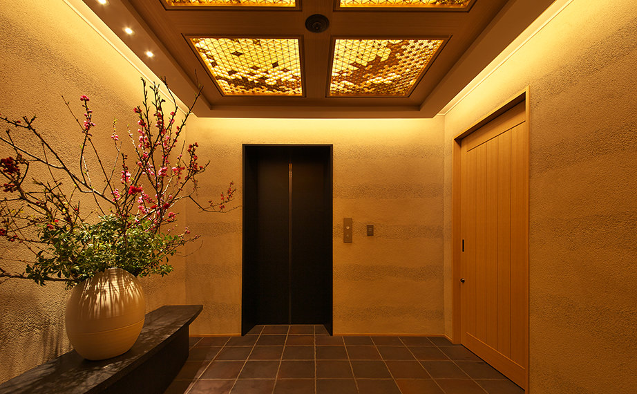 客動線の完全遮断が必要なため、1フロア1組の客間で完結させた計画。