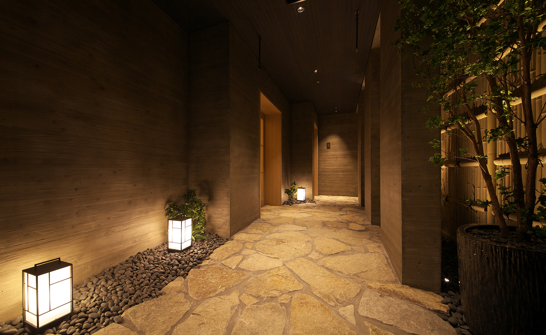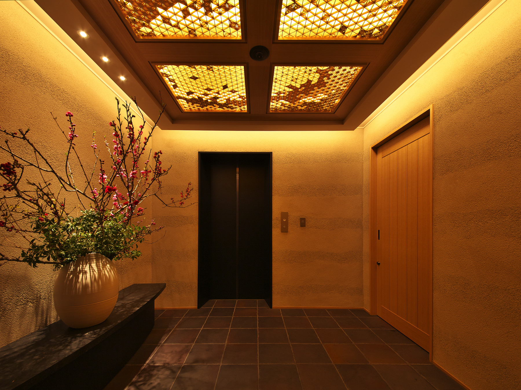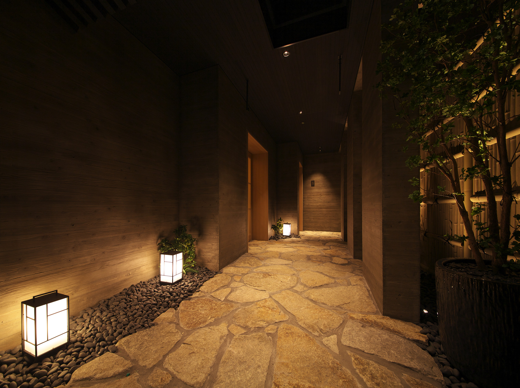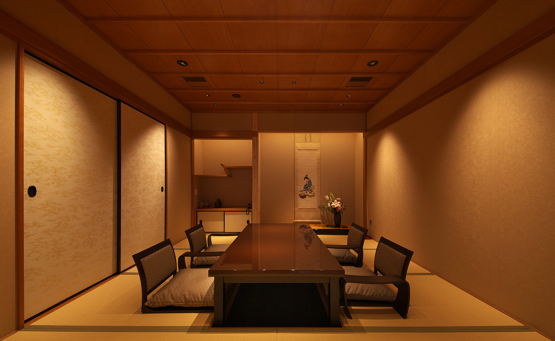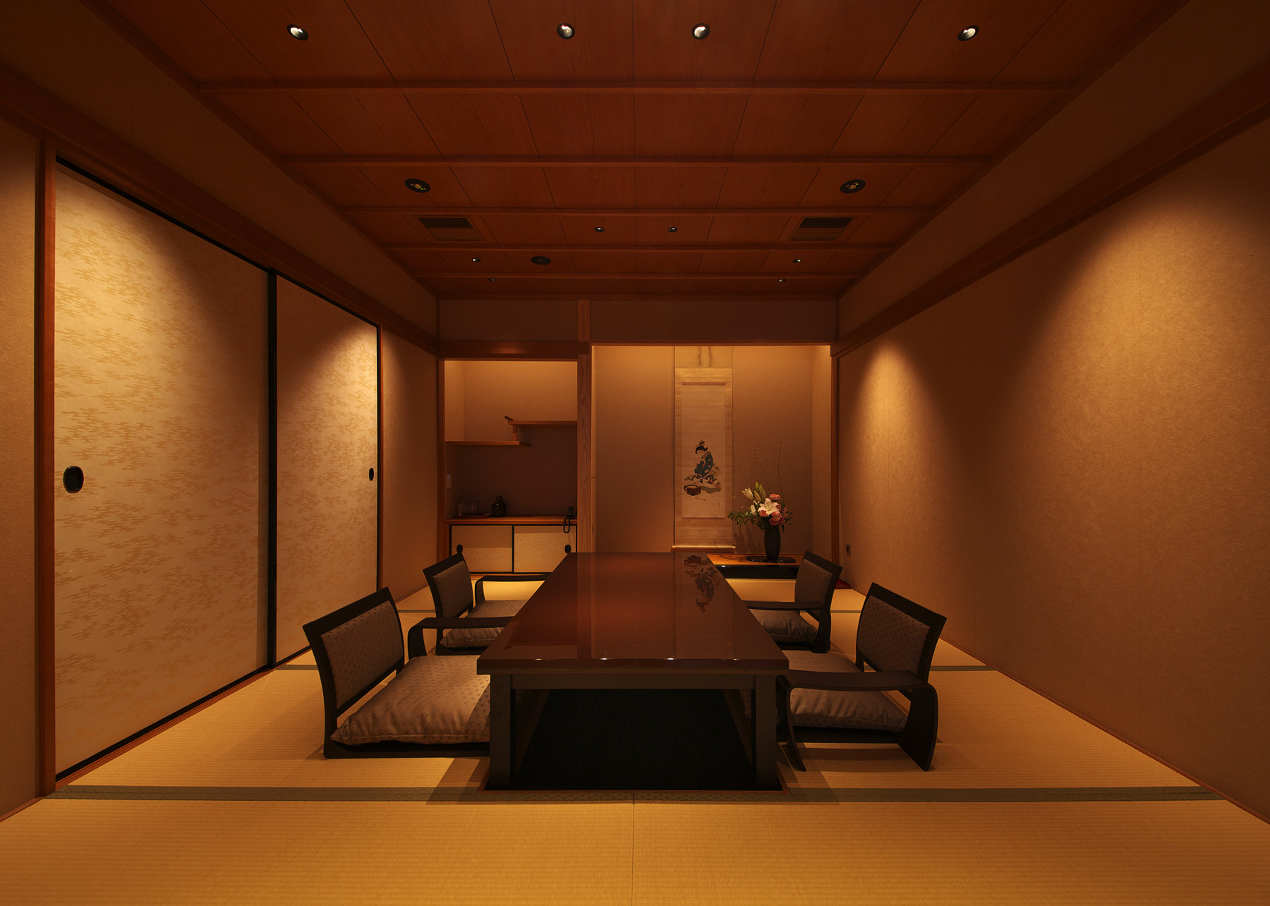 その夜景からはスカリツリーの眺望、そして年一回は隅田川の花火も閲覧できる最上級な空間。和の隠れ家としての最高級のもてなしを込めた施設計画としました。
