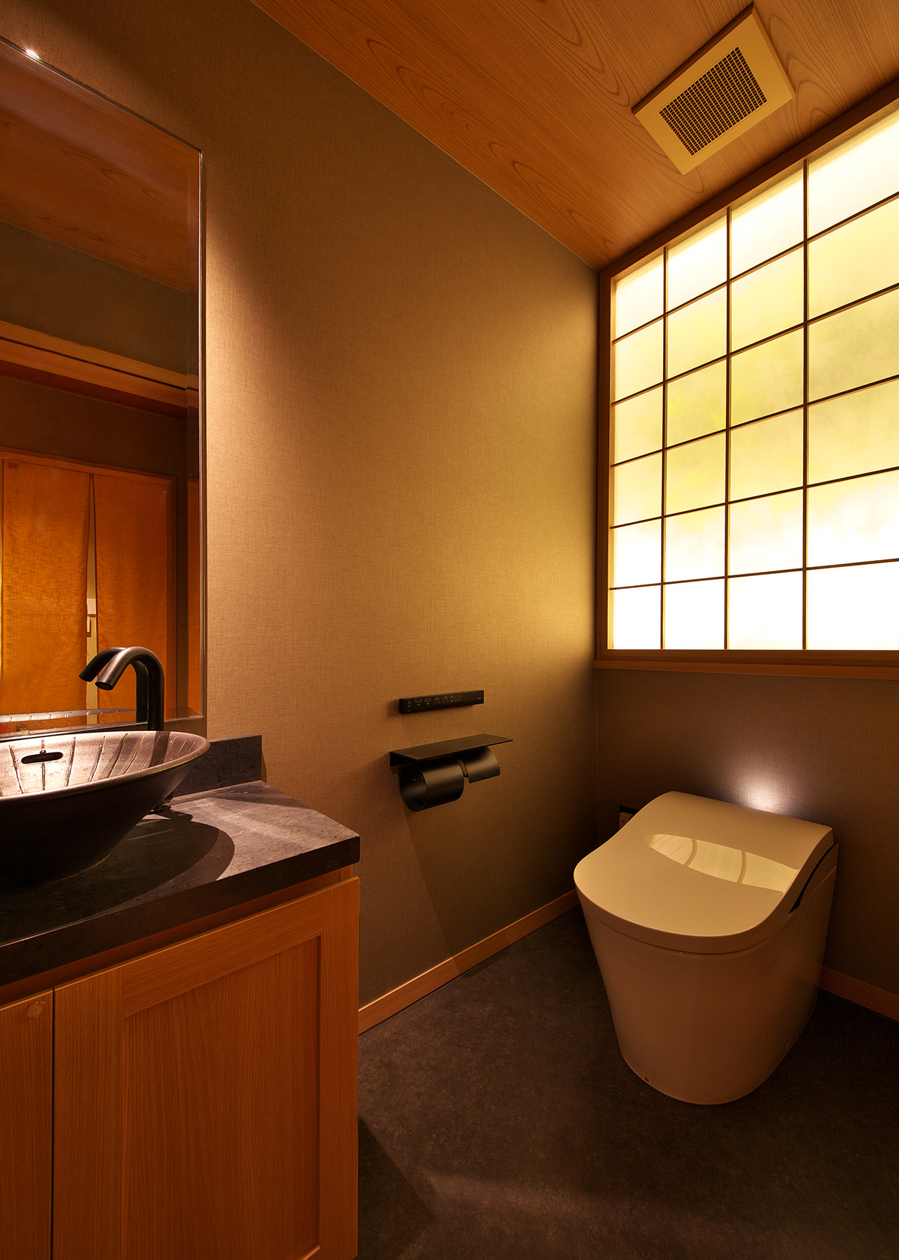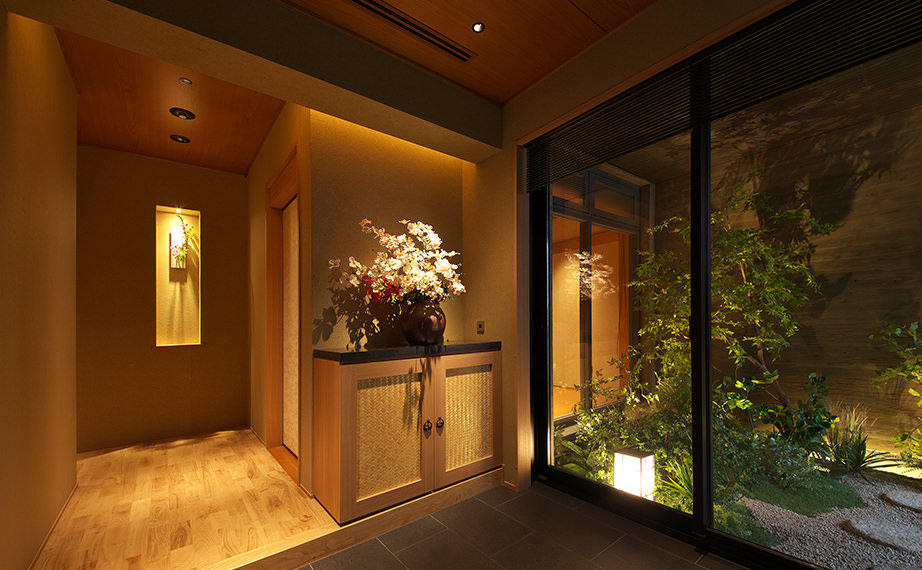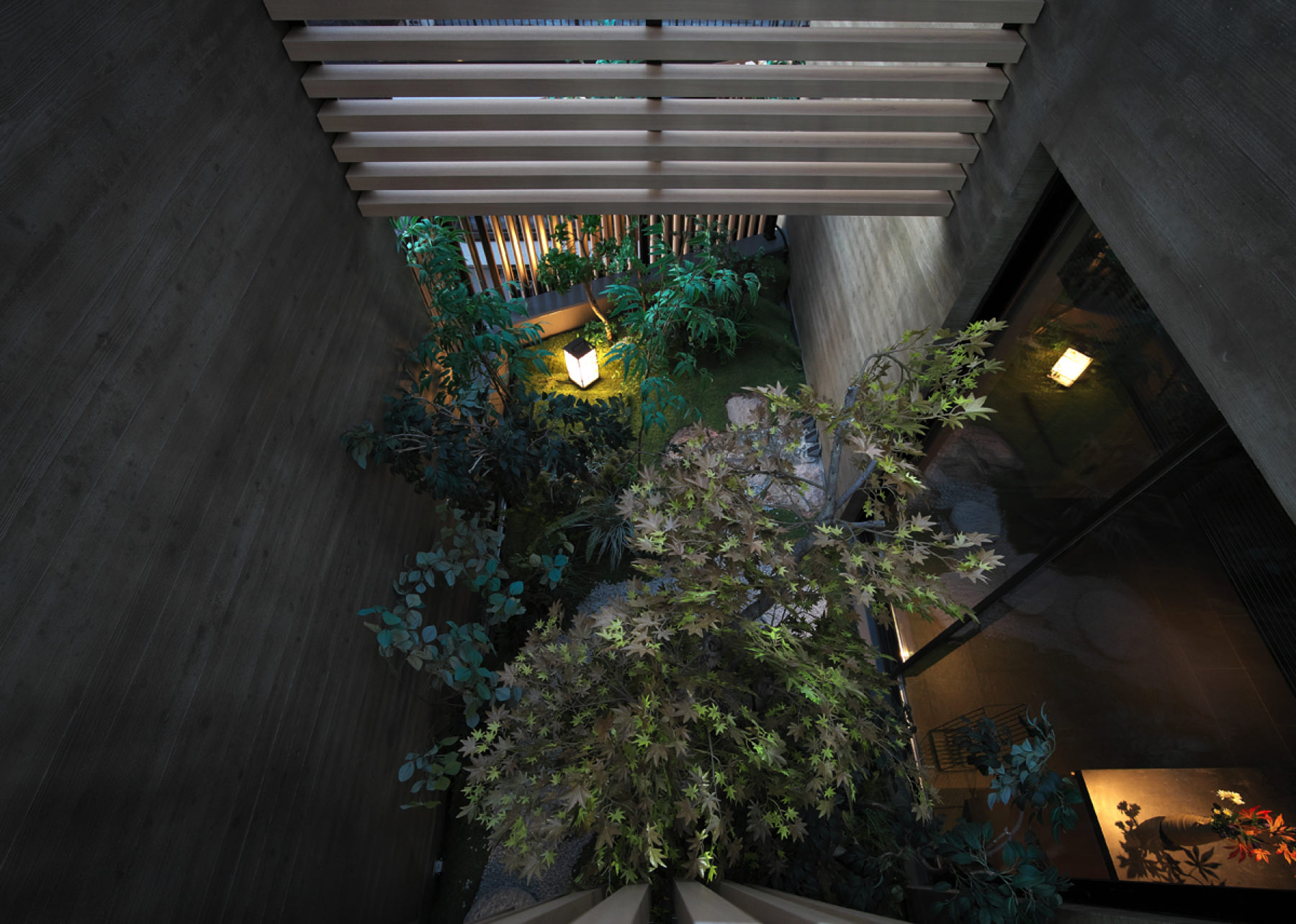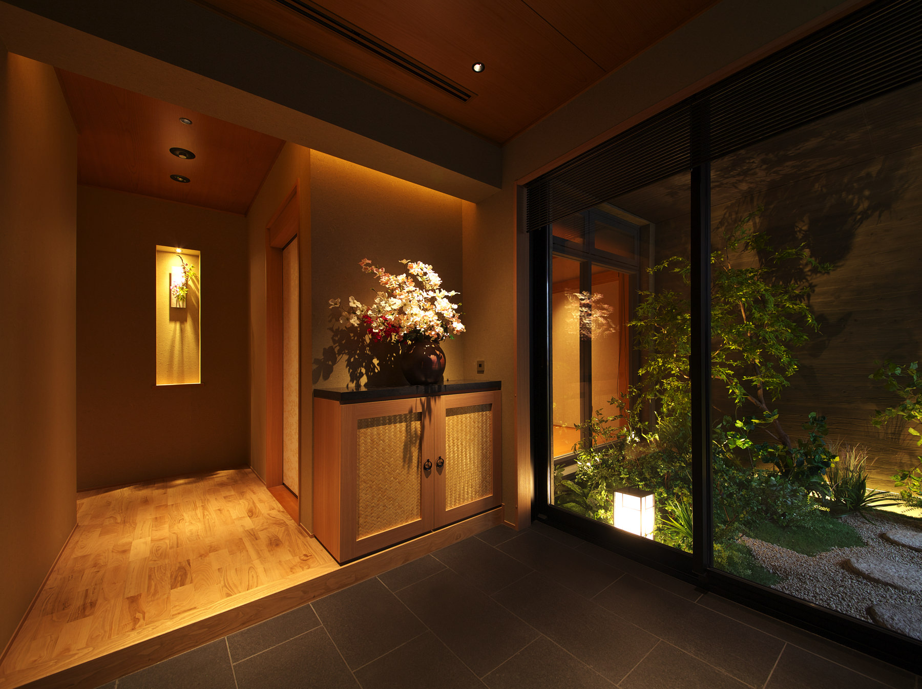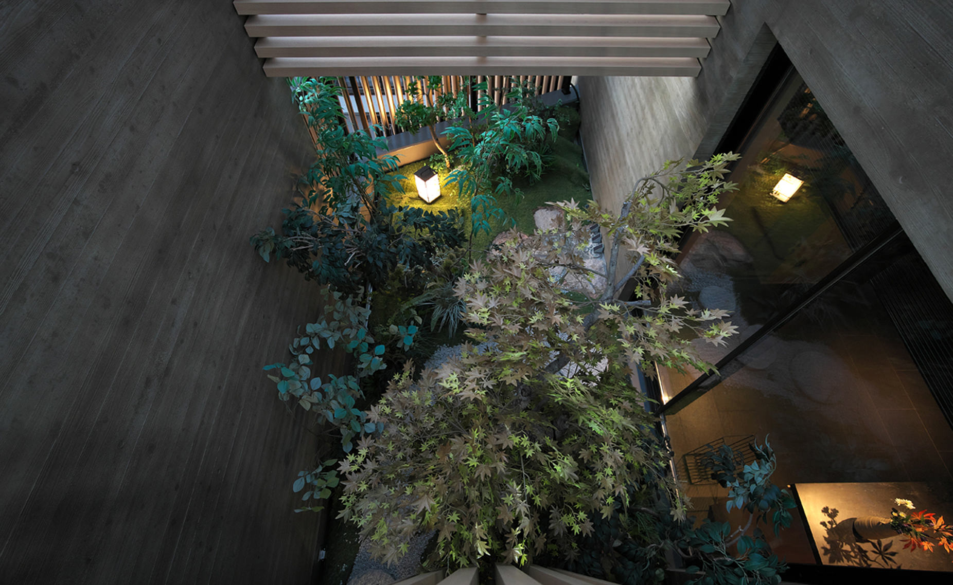 その夜景からはスカリツリーの眺望、そして年一回は隅田川の花火も閲覧できる最上級な空間。和の隠れ家としての最高級のもてなしを込めた施設計画としました。