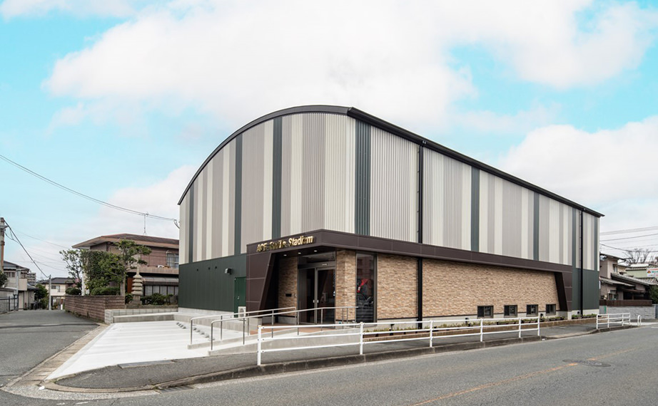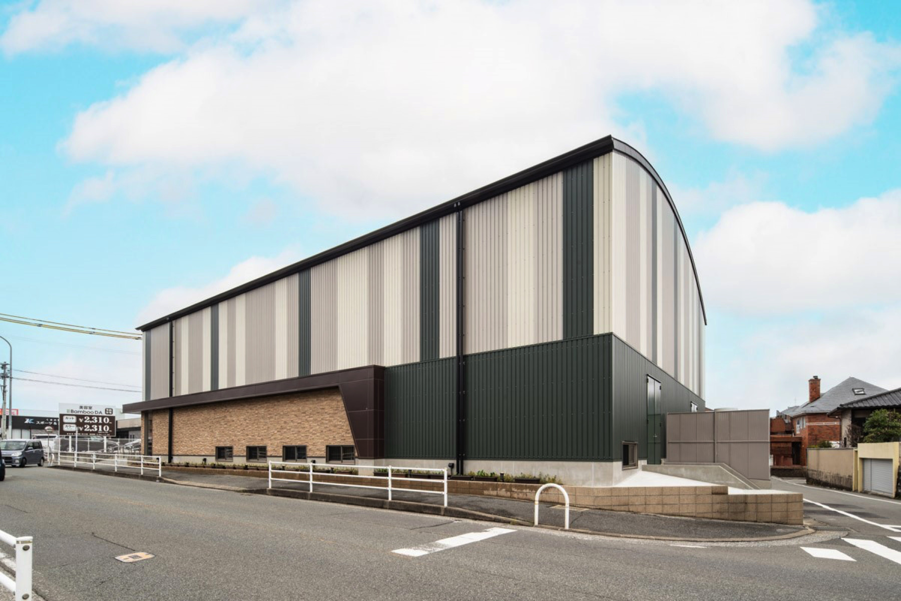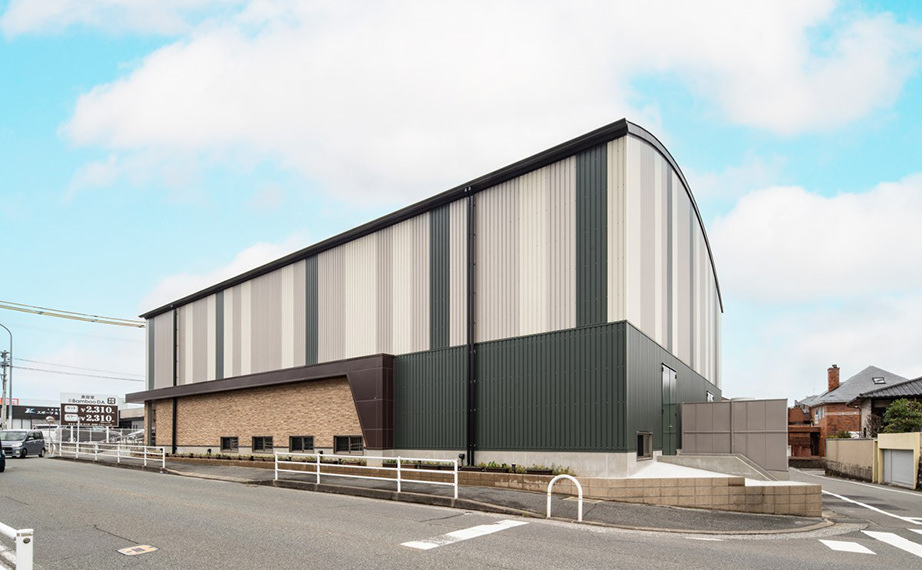 外壁は3色の角波鋼板を組み合わせ建物が立体的に見えるように工夫し、色についても油山をイメージした色としました。