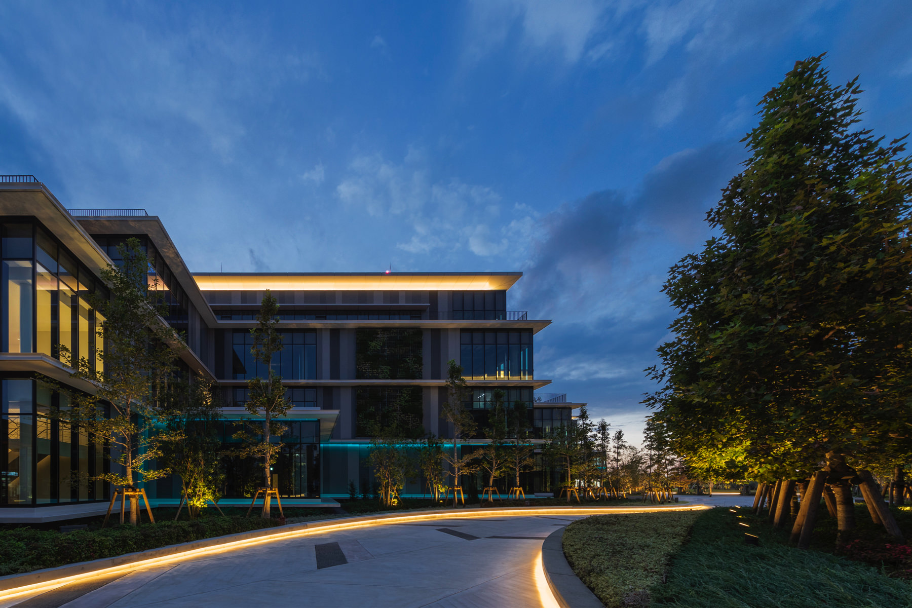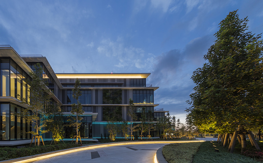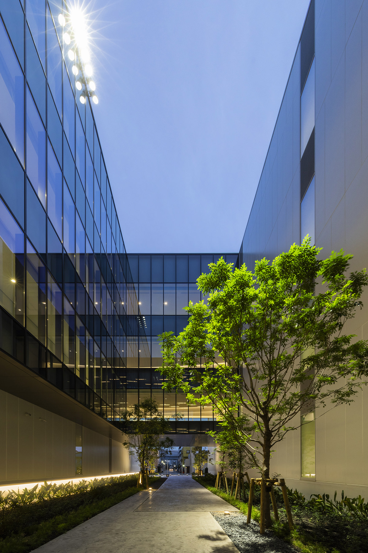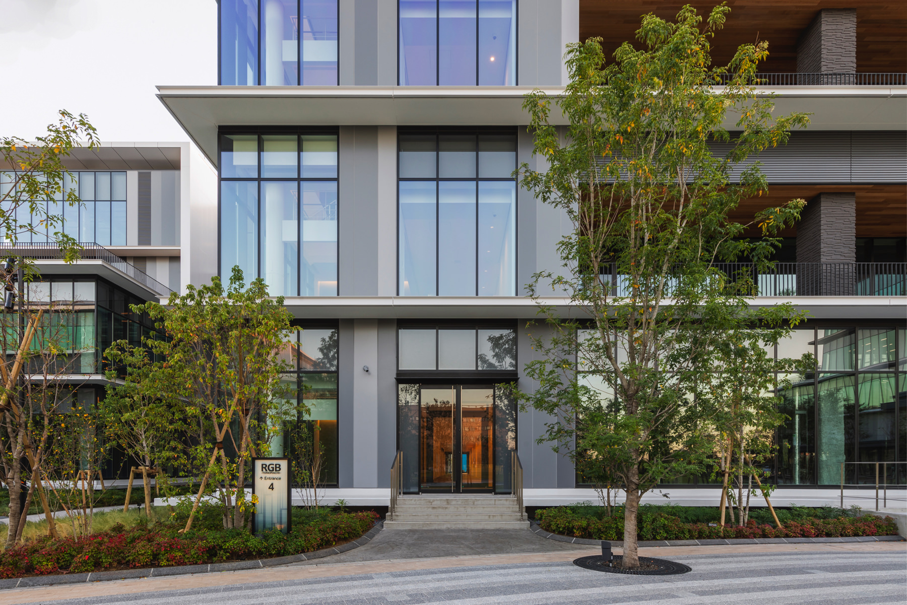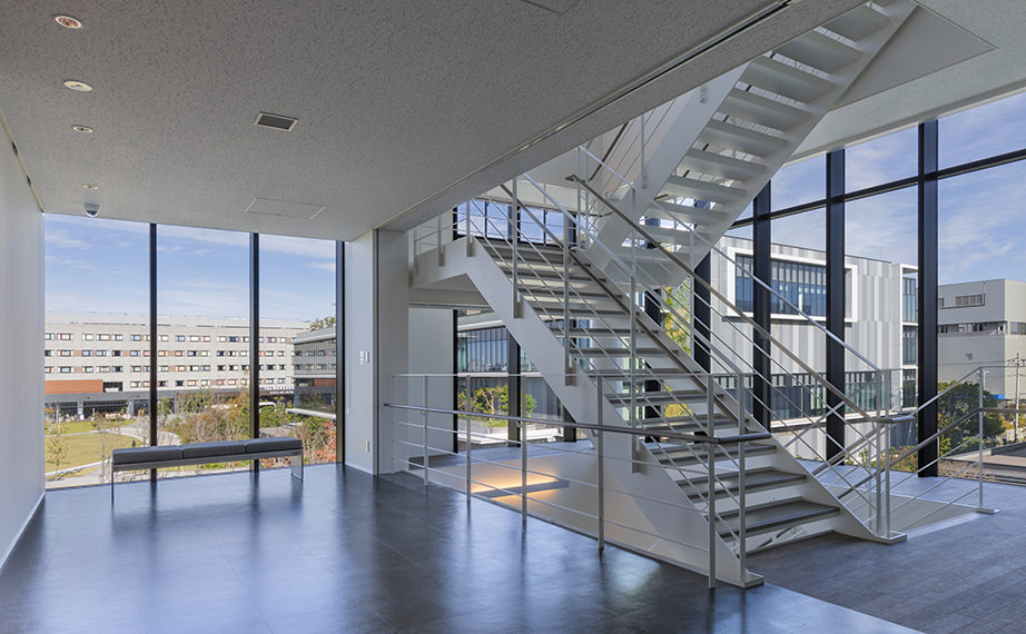 ライフサイエンス・環境分野における研究開発を行う国際戦略拠点「殿町三丁目A地区(キングスカイフロント)開発」における最終プロジェクト。周辺道路からセンターサークルへと導く外構ピロティ・建物形状・テラスによって、利用者が集う場としての外構ランドスケープデザインを行いました。建物中央部に街区の軸線を引込んだピロティ・光庭・ラウンジを計画。ラウンジ内には集う場としてのソファ等の什器、外構と呼応する様な擬木植栽を計画し、閉鎖しがちな研究施設においても自然を感じ交流が生まれる様な空間設計を考えました。