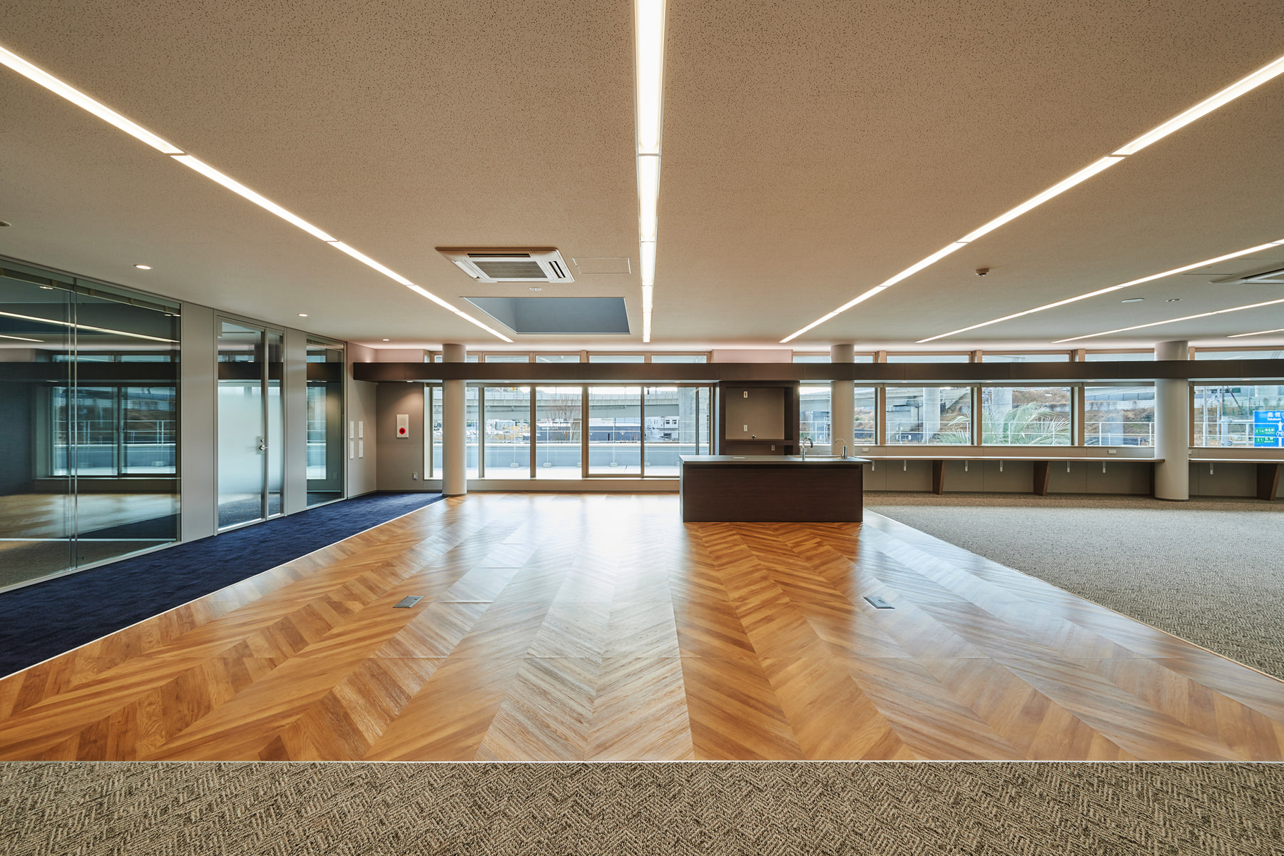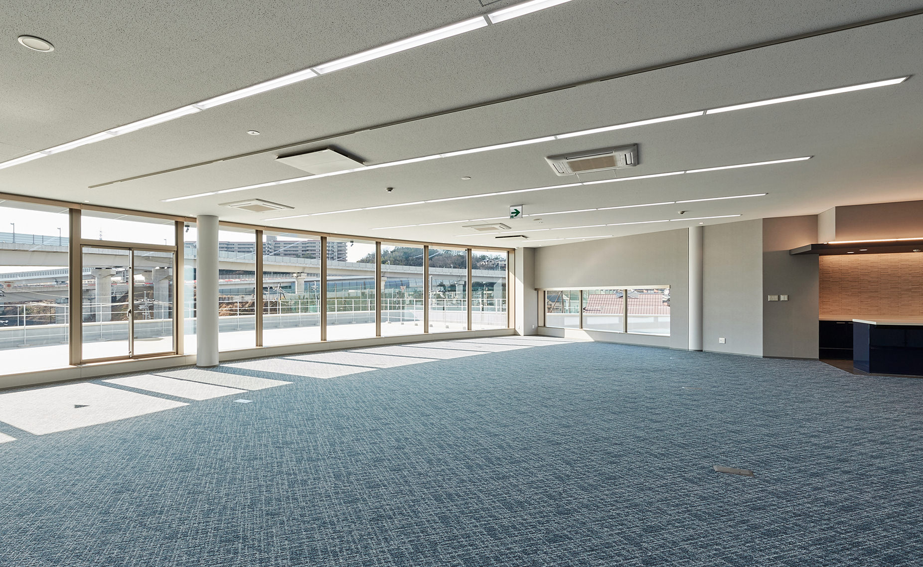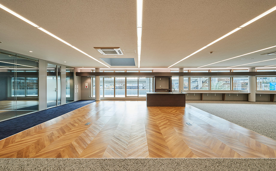 エアポンプの専門企業の本社ビルを移転、新築するプロジェクトです。高い技術でグローバルに活躍、発展している企業の本社ビルとして、ふさわしい建物を望まれました。ポンプという空気を扱い、医療分野まで進出する先進的な技術力を、曲線を特徴とするシルエットとシャープなディテールで表現しました。また、社内で特別プロジェクトを組みモチベーションの高い社員から出たプログラムをできるだけ反映するため、きめ細かい会議とプレゼンを繰り返しました。