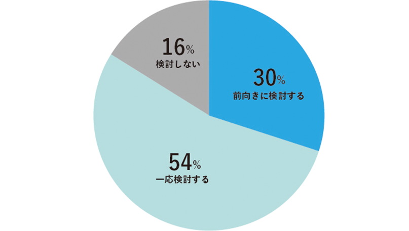 「前向きに検討する」、「一応検討する」を合わせると、8割以上が「分譲住宅を検討する」と回答しました。Q1では「分譲住宅が望ましい」の回答は23%にとどまりましたが、選択肢に含めている人はかなりの割合にのぼります。