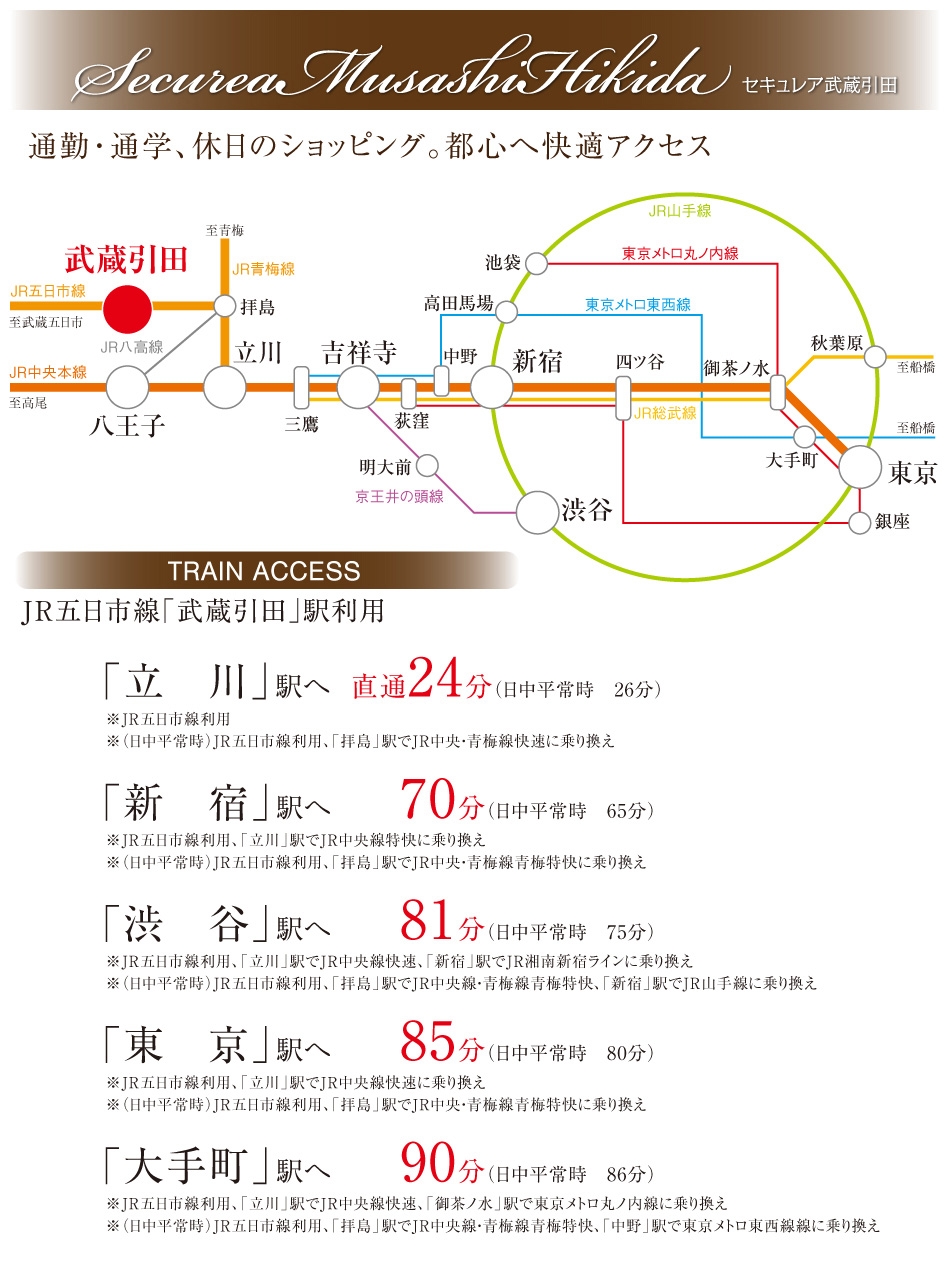 ※所要時間は朝の通勤ラッシュ時のもので、時間帯によって異なります。乗り換え・待ち時間が含まれています。