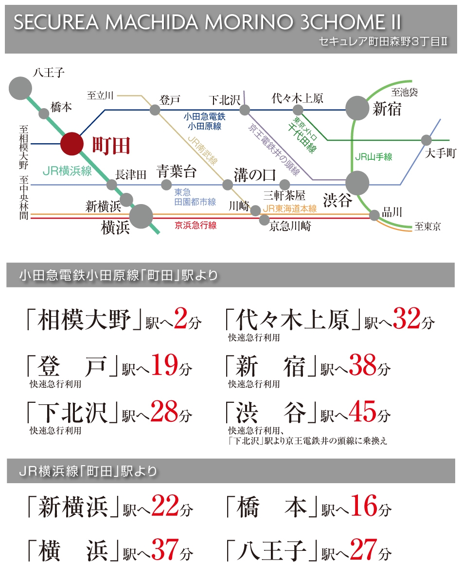 ※所要時間は朝の通勤ラッシュ時のものであり時間帯により異なります。乗換え・待ち時間が含まれます。