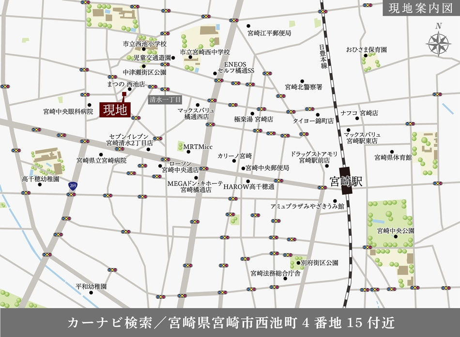 宮崎県宮崎市西池町4番地15付近