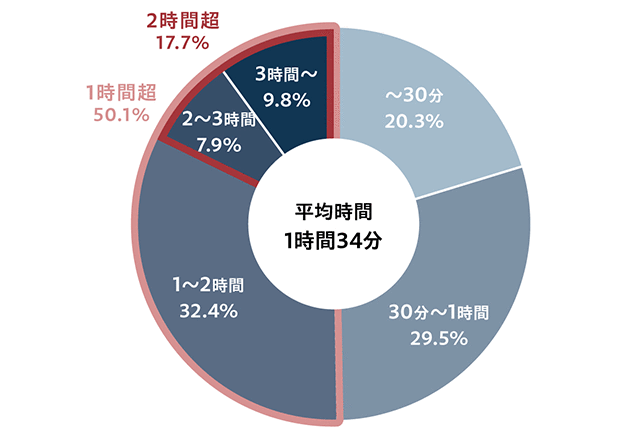 1運行あたり、どれだけの荷待ち時間が発生しているかに関しては、平均は1時間34分。1時間以上の待ち時間が半数以上、2時間以上の待ち時間が17.7%も存在していました。