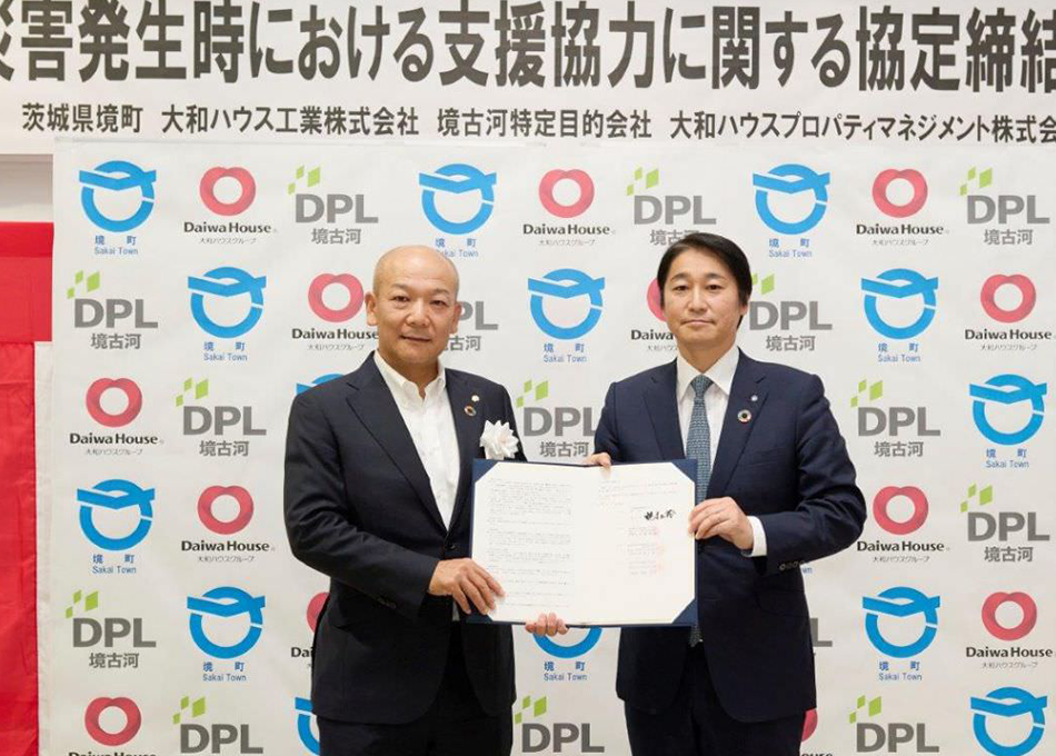 大和ハウス工業においても、茨城県境町をはじめ、さまざまな自治体と災害発生時に同施設を近隣住民の一時避難所や駐車場として活用することなどを定めた「災害発生時における支援協力に関する協定書」を締結しています。