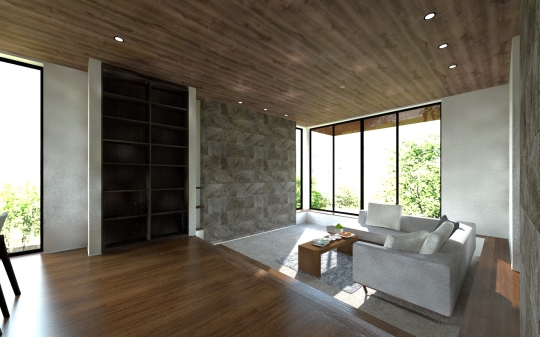 ポイント1:ロースタイルリビング・最大3m6pの天井高による開放的なリビング空間
