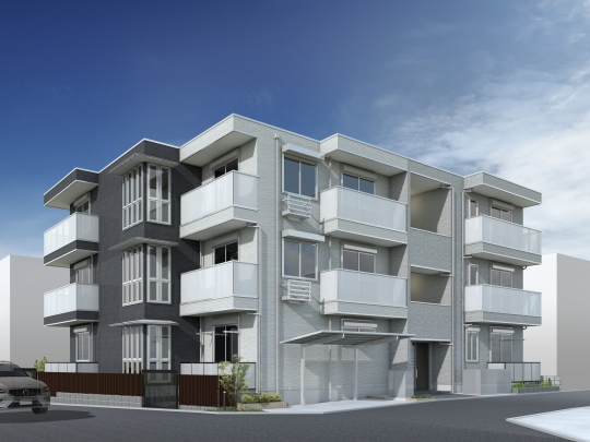 約92坪の事務所を転用して建築した3階建ての賃貸住宅です。外観にこだわり、ファミリー世帯をターゲットとした2LDK〜3LDKの間取りで構成してます。大きなバルコニーを設置するなど、他の物件との差異化を図った賃貸住宅です。