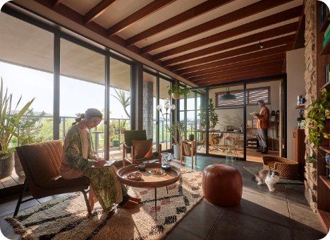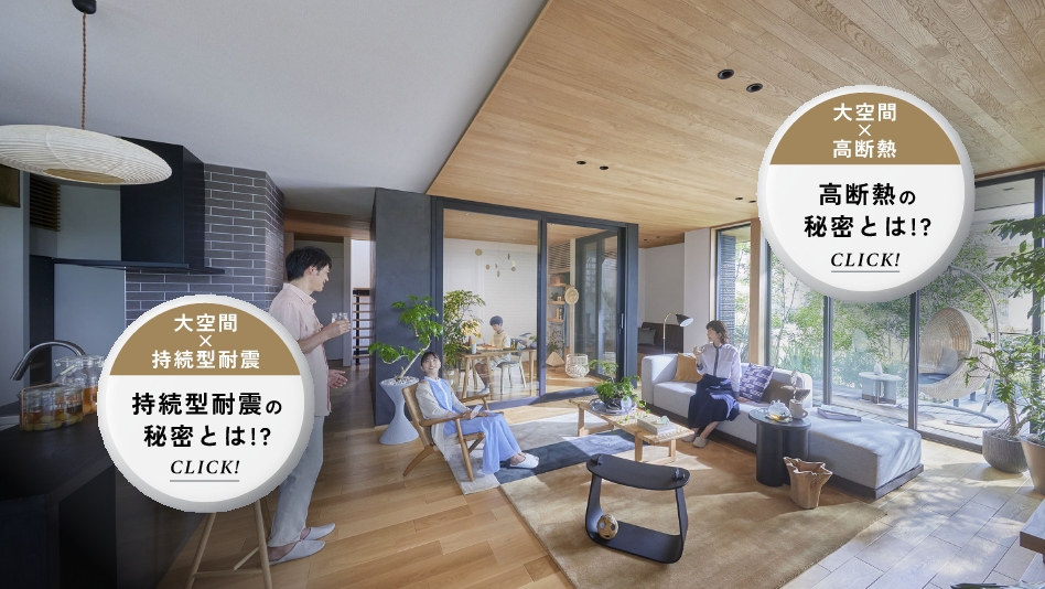 柱を外からしっかりと包む込む独自の内外ダブル断熱で、未来基準の「断熱等級6」を標準化。開放感はそのままに、一年中快適な住まいを実現します。
