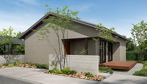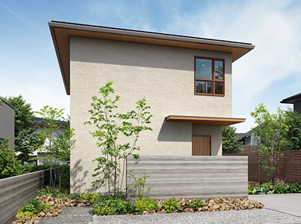 毎日の暮らしをより豊かに彩るために、外観から室内の細部にまで上質さを追求しました。深みのある造形美を誇る外壁、存在感を放つ玄関ドア、天然木の温もりあふれるフローリング。住まうほどに価値を実感できる仕様をあらかじめ備えた規格住宅です。