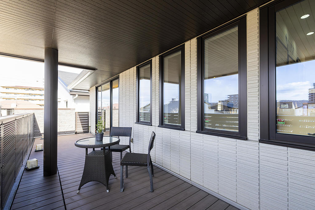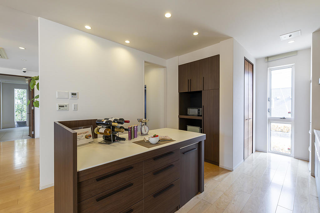 『女性が美しく暮らせる家』をコンセプトに軒内空間がつくる深い陰影とシックで落ちつきのある外観。そして一歩うちに入れば家族が自然と集う居心地の良い空間です。吹抜けのある開放的なLDKを是非ご体感下さい。癒し空間コクームスペースも一見の価値有りです。