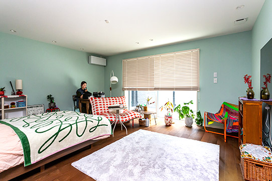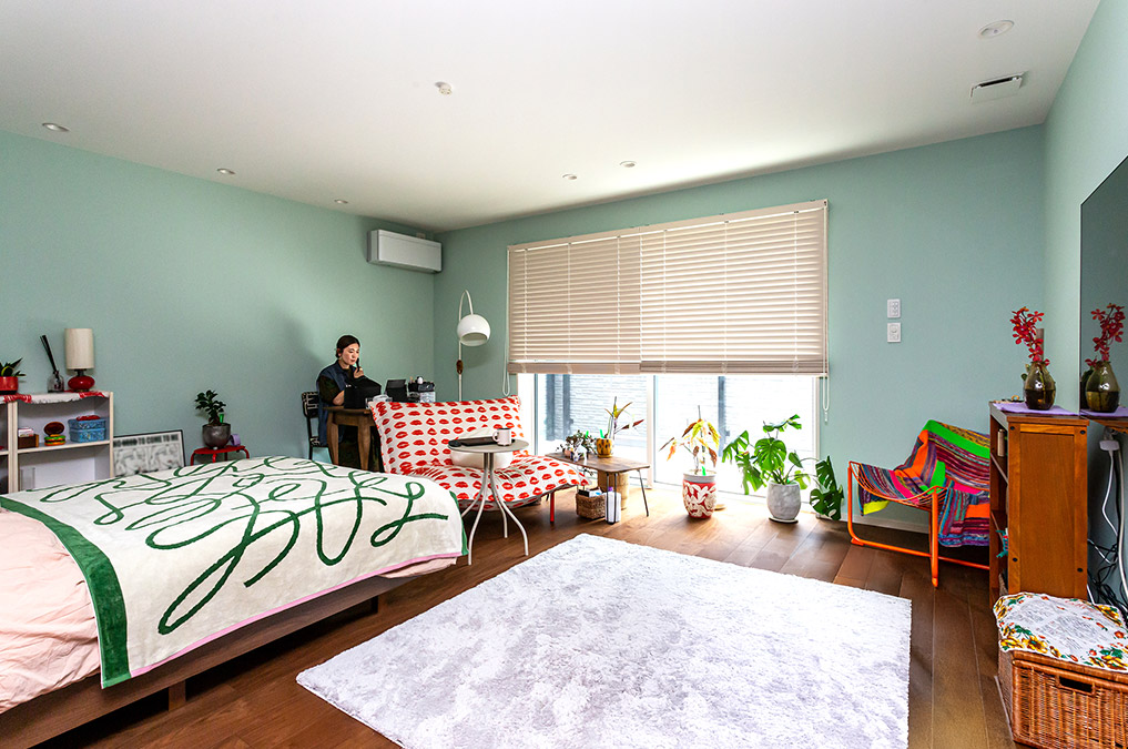淡いグリーンやピンクをベースカラーにしたプライベートルーム。LDKをはじめとするパブリックスペースの落ち着いた雰囲気とは一転し、個性とセンスを存分に詰め込んだインテリアデザインです。