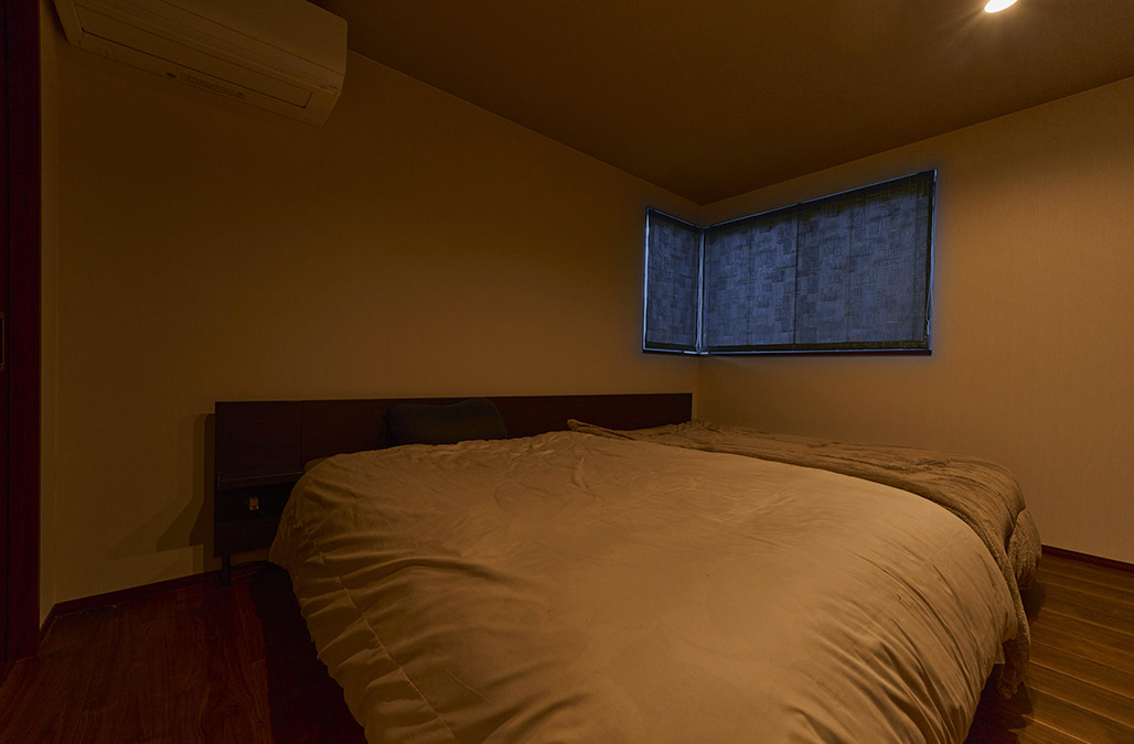 安らぎの場所として、落ち着いたトーンで整えた2階の主寝室。ゆとりあるウォークインクローゼットが隣接し、身支度の動線をスムーズに。コーナー窓からは朝の光が差し込み、穏やかな目覚めへと導きます。