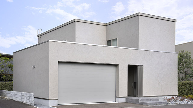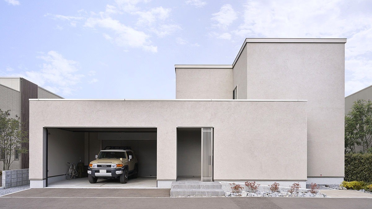 余計な装飾をそぎ落としたグレージュトーンの外観は、街並みに静かに溶け込みながらも確かな品格を放ちます。フラットな屋根の水平ラインを強調したシンプルな造形だからこそ、継ぎ目のない塗り壁による陰影豊かな質感が際立ちます。洗練されたたたずまいは、住まうほどに愛着を深めます。