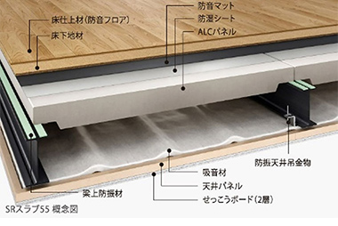 構造への負担が軽減できる、軽くて遮音性に優れた遮音床技術
