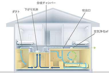 リビングフロアの温度差を減らし、快適で身体にやさしい温度環境を提供する空調システム技術