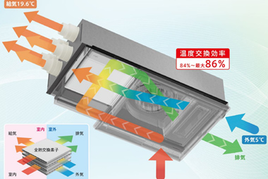 業界最高水準の温度交換効率の第一種熱交換型換気システム