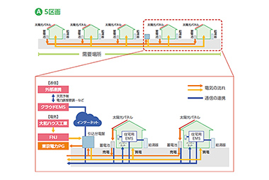 蓄電池の稼働率と太陽光発電による電力の自己消費率を向上させ、まち全体の購入電力を削減する電力融通技術