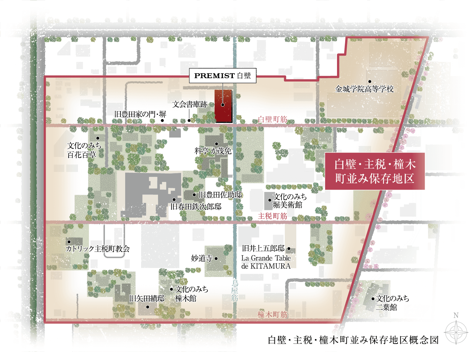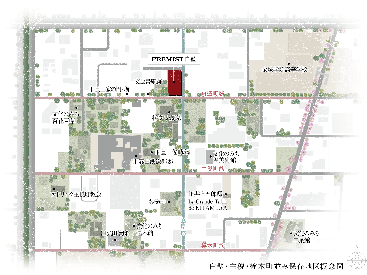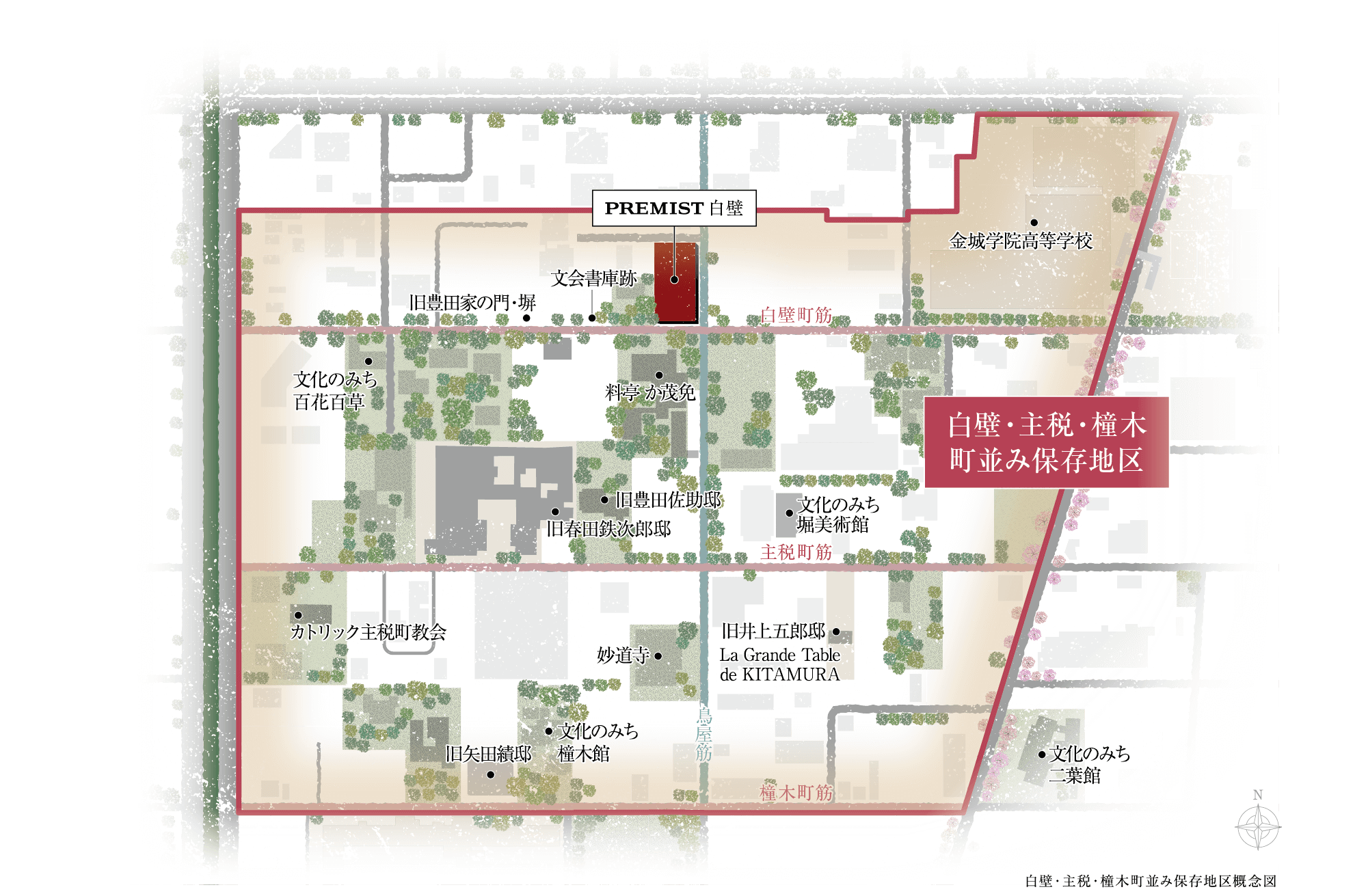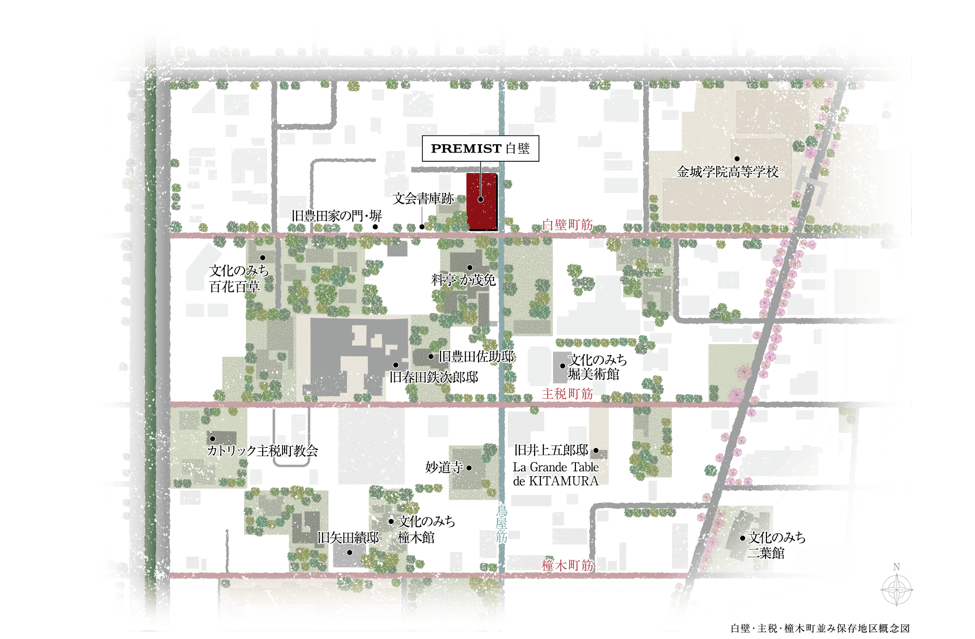 白壁町筋と鳥屋筋が交差する、その角地へ。