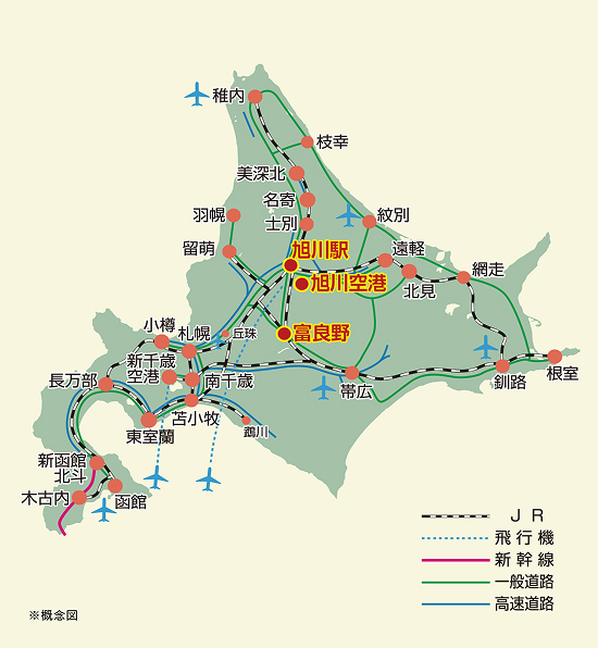 ニセコに一番近い空港は、新千歳空港。移動にはそれなりの時間がかかります。比べて富良野には車で約1時間ほどの距離に旭川空港があり、東京の羽田空港から午前と午後それぞれの便で日帰り移動することができます。また旭川空港は、韓国や台湾などアジアの都市にある空港と国際便で直接結ばれています。飛行機の遅延や欠航につながりやすい冬の発着率に注目してみると、新千歳空港は70%、旭川空港は99%※。オンタイムで移動ができる飛行機の発着率の安定した高さは、インフラ面を重視する投資家にとっての魅力となっています。