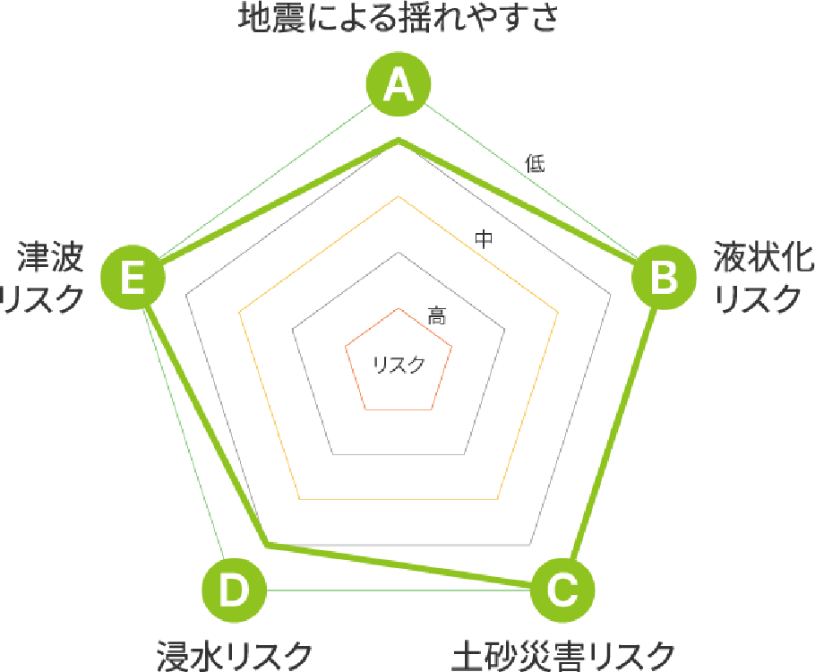 災害リスクが低く、 地盤も安心なことが見込める立地。