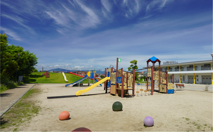 住宅街の中にありながら、豊かな緑と広々とした空間が魅力の公園。園内には砂場や遊具が整備され、子どもたちが安心して遊べる環境が整っています。季節の草花や木々に囲まれながら、憩いの場として、日常の中で気軽に過ごせる公園です。