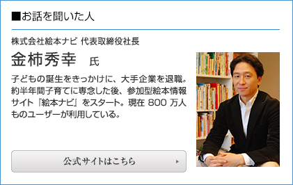 お子さんがスマートホンやタブレットに触れる機会が増えている家庭も多いのではないでしょうか。画面にタッチすると動いたり、音が鳴ったりという楽しいリアクションは、子どもの集中力を高め、学習を促す効果も期待できます。そこで注目したいのがデジタル絵本。絵が映り、朗読が流れるシンプルなものから、子どもが主体的に絵本の世界に参加できる新しい作品も登場しています。その活用術、おすすめ作品について、800万人のユーザーが利用する絵本情報サイト「絵本ナビ」代表、金柿秀幸さんに伺いました。