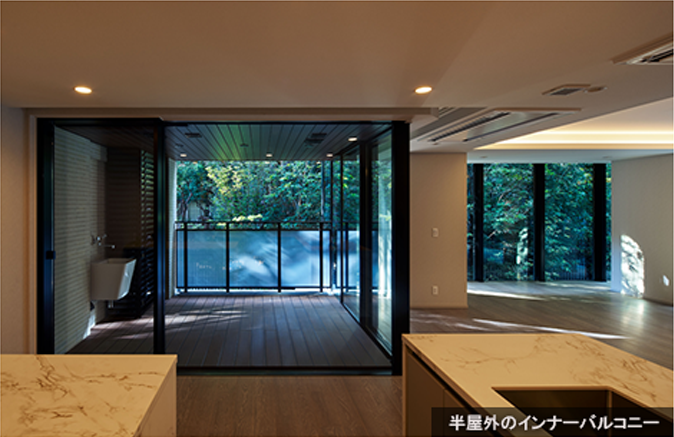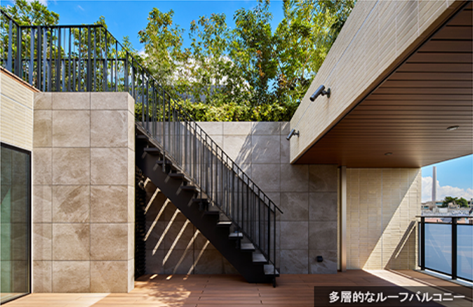 プレミスト南平台の「開放性」を表す象徴となっているのが、各専有部に設けられたインナーバルコニーやルーフバルコニー。最上階にはルーフテラスを設置しました。