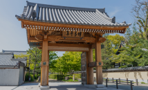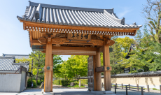博多千年門とは、木造切妻瓦葺の門で、承天寺通りに2014年3月に建設された、博多旧市街へのウェルカムゲートです。千年楠材を用い、博多織の意匠が施された欄間が特徴。歴史と近代が織り交ざる風景を象徴するランドマークとして親しまれています。