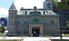 1910年建築のフレンチルネサンス様式を採用した木造洋館で、重要文化財に指定されています。石柱ポーチや八角塔、小窓あしらいなど外観の美しさと、大理石暖炉や天井装飾が彩る上品な内部が魅力。訪れる人を時代を越えた優雅な世界へ誘います。