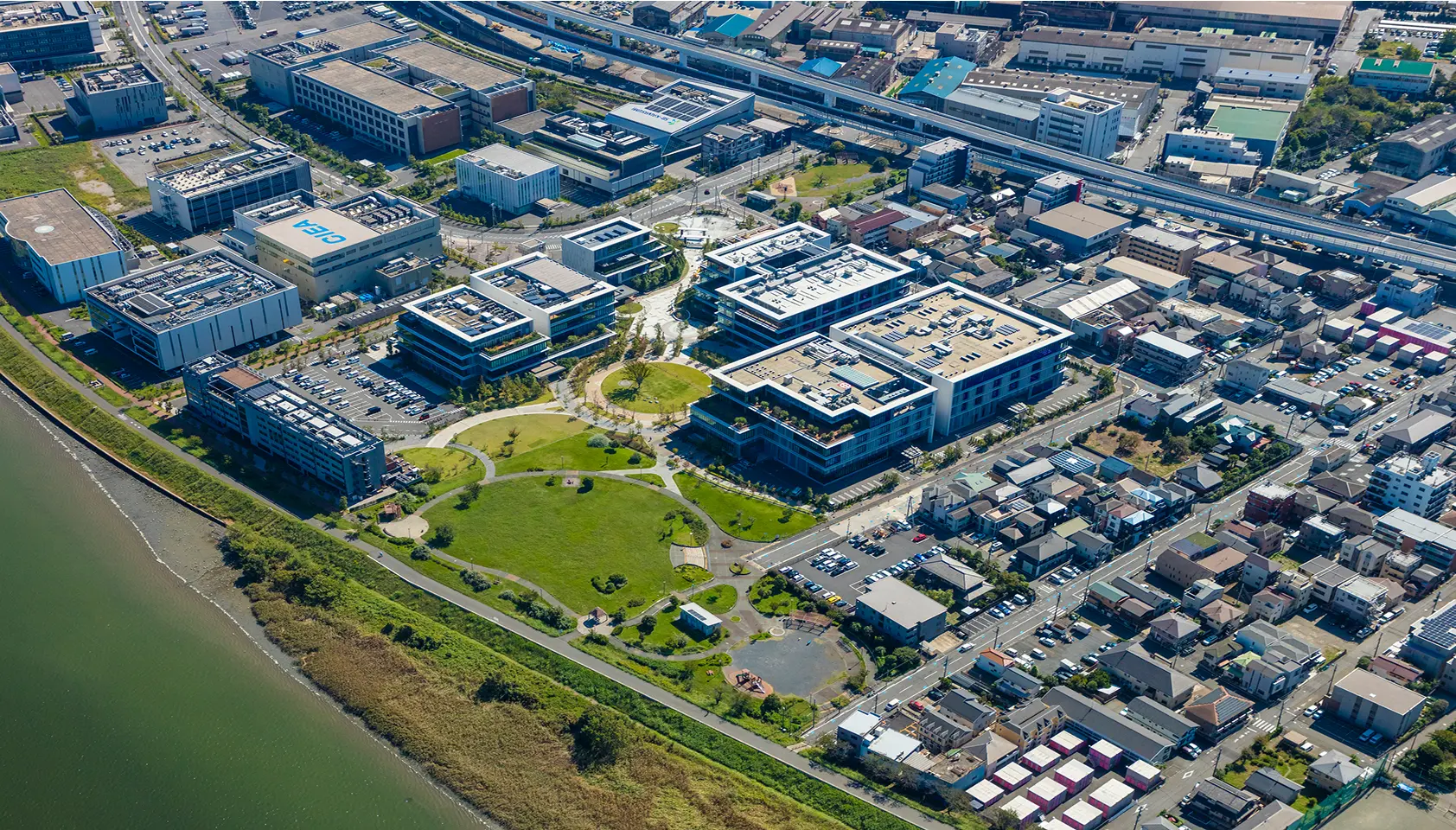 殿町国際戦略拠点、通称「キングスカイフロント」。羽田空港の南西、多摩川の対岸に位置し、約121,000坪におよぶ広大なこの開発エリアは、ライフサイエンス・環境分野における世界最高水準の研究開発から新産業を創出する、重要拠点として位置付けられている。 「殿町プロジェクト」の舞台となるのは、キングスカイフロントの西端、敷地面積4万6,172.96平方メートル(東京ドーム約1つ分)の「A地区」にあたる場所。かつてそこには企業の工場があり、その撤退後は都市再生機構(UR)が所有。行政主導の構想のもと進む開発の中で、土地の東側が住宅地に隣接するこの場所は、「研究開発だけでなく、まちの賑わいと交流を創出したい」というオーダーのもと開発パートナーが公募で募集されていた。閉鎖的なイメージのある工業地帯を、企業同士、さらには地域に開かれた場所へ。入札の末、大和ハウス工業が、「A地区」の土地を取得。川崎市との連携のもと、工場地帯のイメージを一新するプロジェクト、「殿町プロジェクト」が2014年に幕を開けた。まちびらきまで、10年を要したこのプロジェクト。牽引した営業担当は、社内関係者、行政、地域住民との協議を重ね、まちの構想を主導していく。
