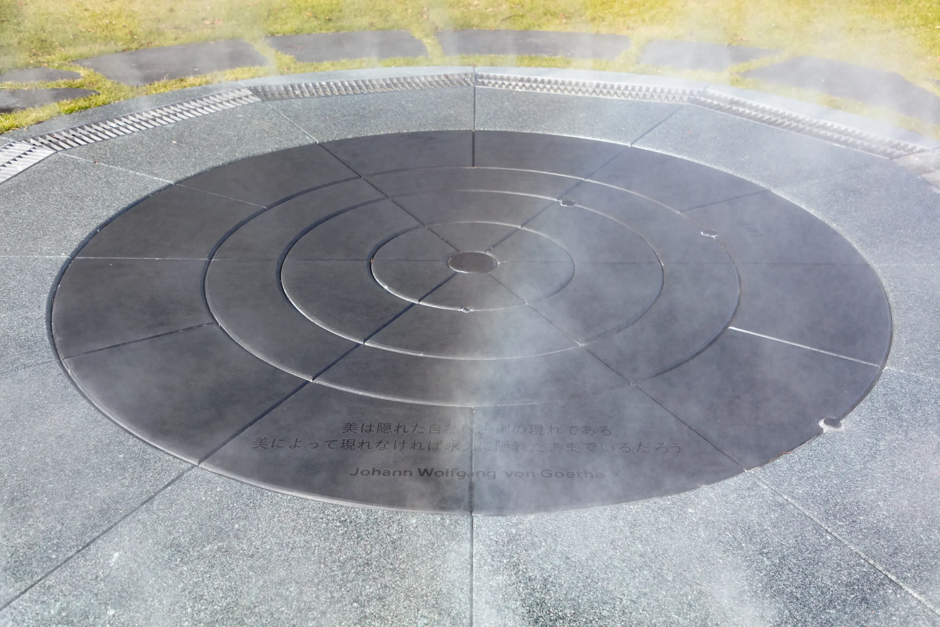 公園側から見たセンターサークル(中央部円形広場)と研究施設