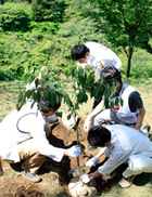 | 2008年度より、財団法人吉野山保勝会や地元の高校生とともに、奈良県吉野山に群生している桜(ヤマザクラ)を保護するため、植樹や種植えなどの活動を行っています。 |