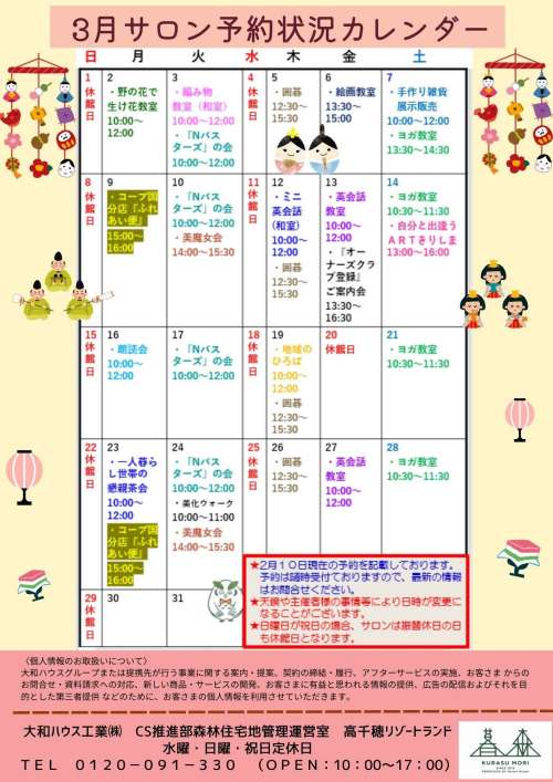 3月のイベント案内をお知らせいたします。