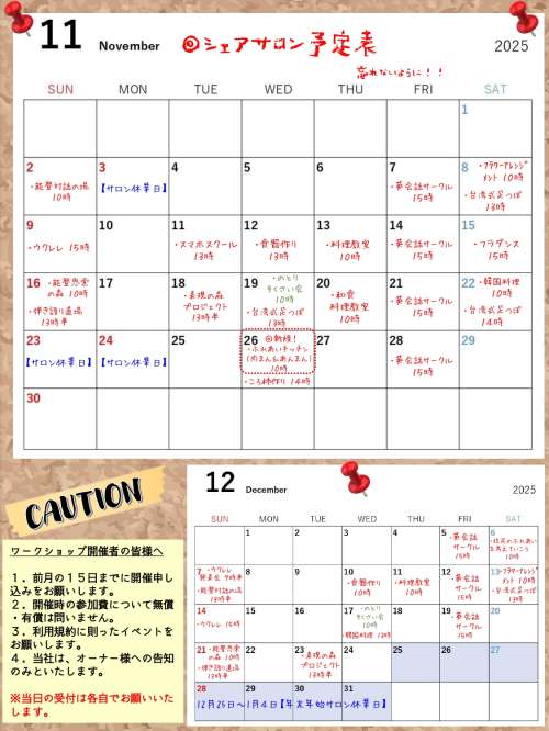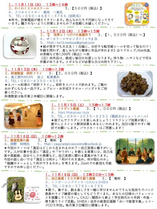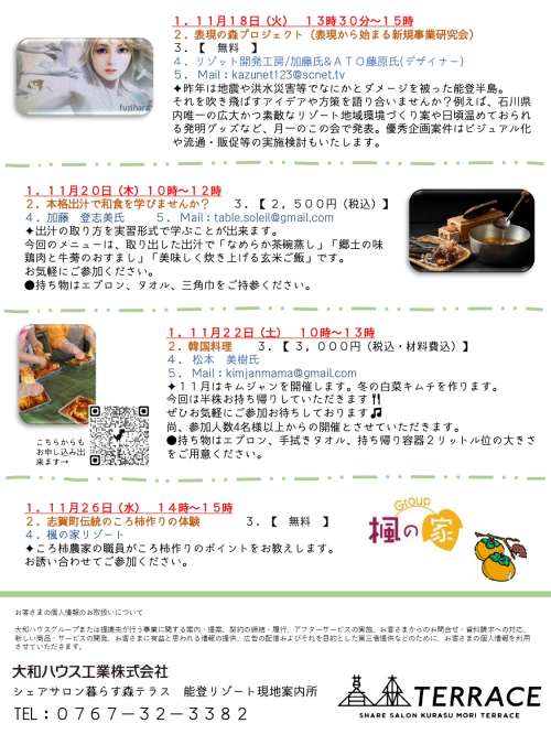 シェアサロン暮らす森テラス【11月ワークショップのご案内】