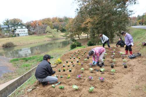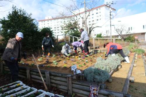 オーナー様と中央公園と、のとりガーデンに花植えをしました