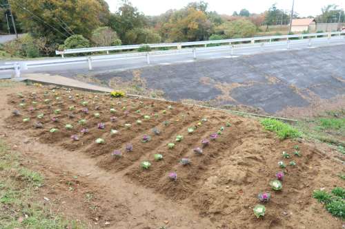 のとりガーデンでは、今回は四角い形に沢山植えましたよ