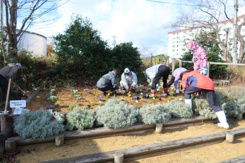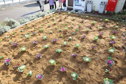 葉牡丹パンジーを植えました。中央公園の一角で眺めも良い場所です