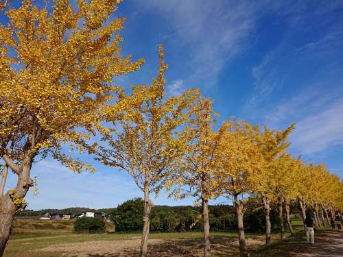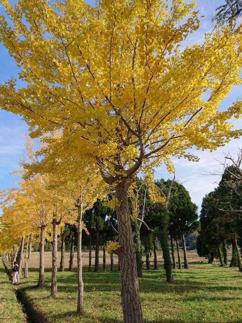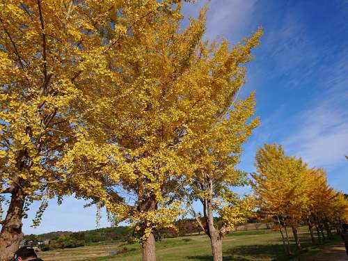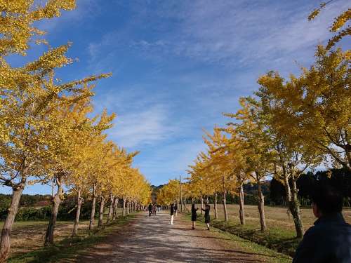 11月中旬、イチョウ並木が黄色く色づき、見頃を迎えていました