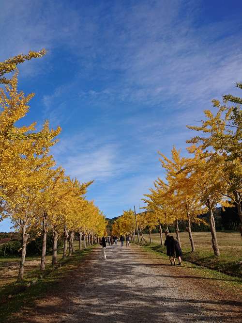 紅葉スポットとして知られる宝達志水町の「イチョウ並木道」