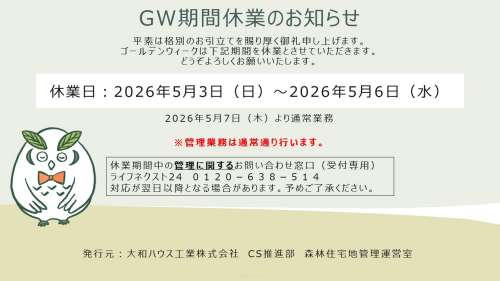 お問い合わせ・お申し出など、スタッフの対応については5月7日(木)以降に