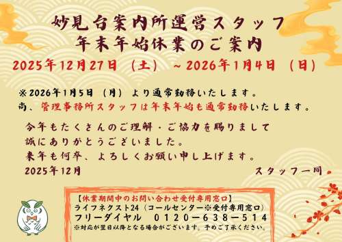 勝手ながら、下記の期間中は現地案内所を 休業させていただきます。