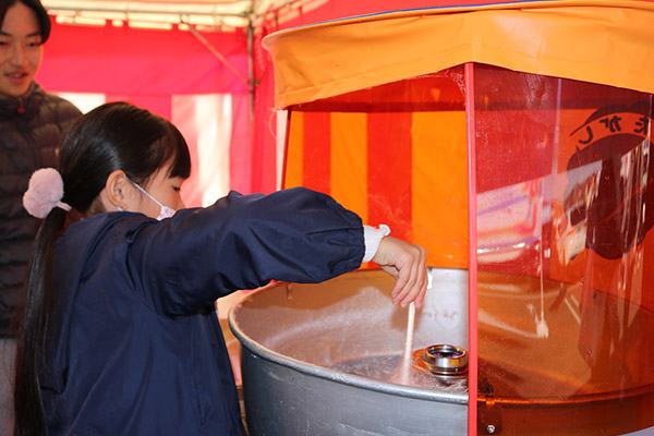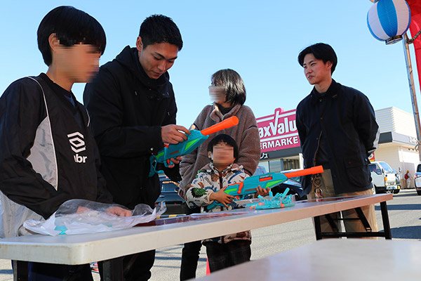 時間がたつにつれて来場者も増え、バザー品は飛ぶように売れていきます。併設していた射的ゲームや綿菓子づくりのブースには、親子連れの明るい声が響き、会場ににぎわいを添えていました。