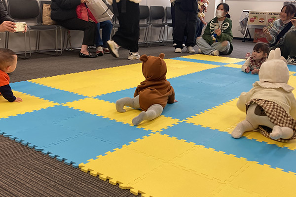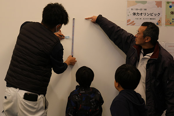 姿、垂直跳びに挑戦するお父さんへ大きな声援を送るこどもたち、ハイハイする赤ちゃんをやさしく見守り、声援を送るご両親の姿など、あちこちでほほえましい光景が見られました。
