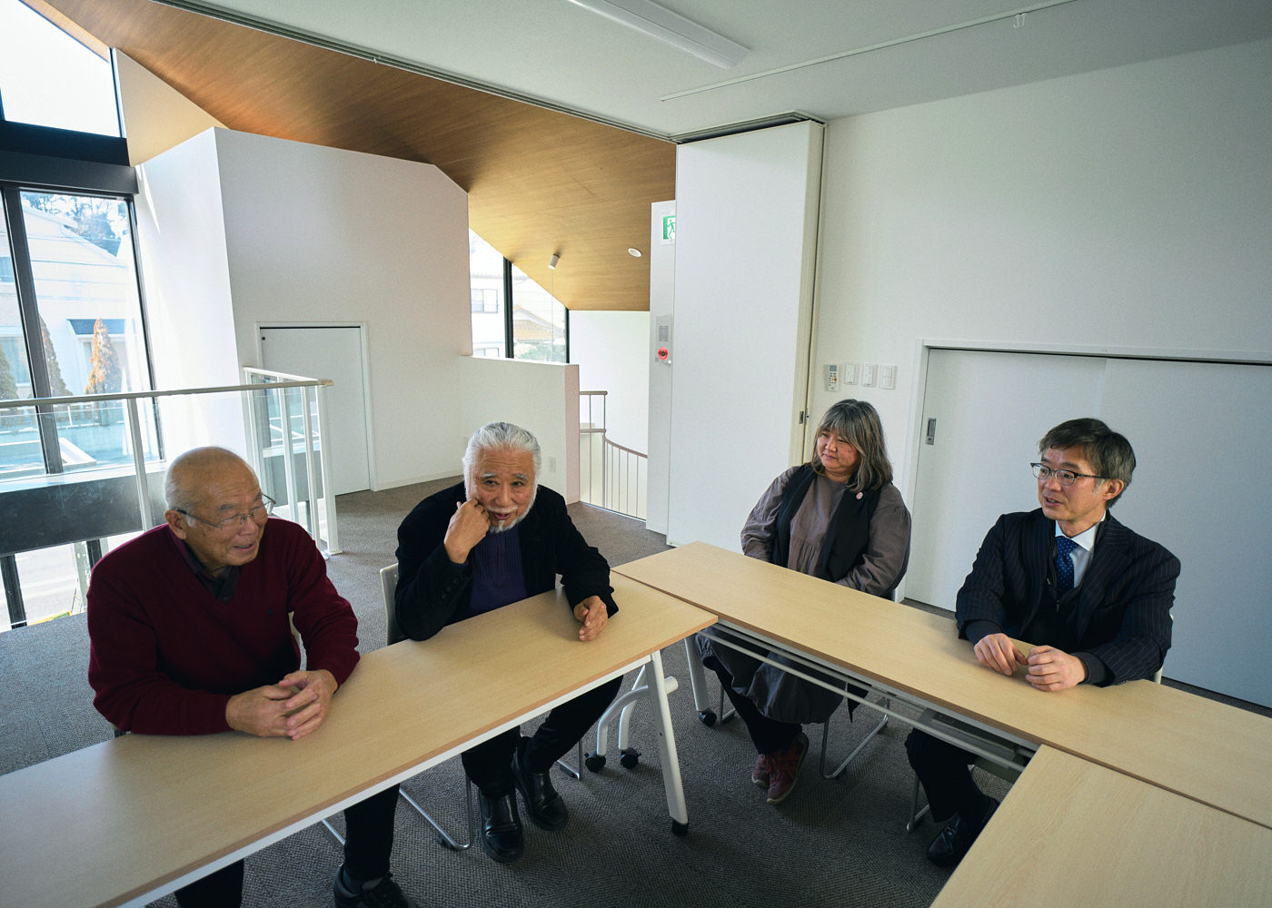 企業として住民に寄り添う大和ハウス工業の岩見武敏さん。住民たちの中心に立つ、上郷ネオポリスまちづくり協議会座長の吉井信幸さんと、開発当初から50年以上このまちに住み続ける、同協議会事務局長の小西淳一さん。12年前に移住し、母親目線でまちを見つめるタウンクリエーターの小松めぐみさん。それぞれの立場から見た、まちの歩みと未来とは。