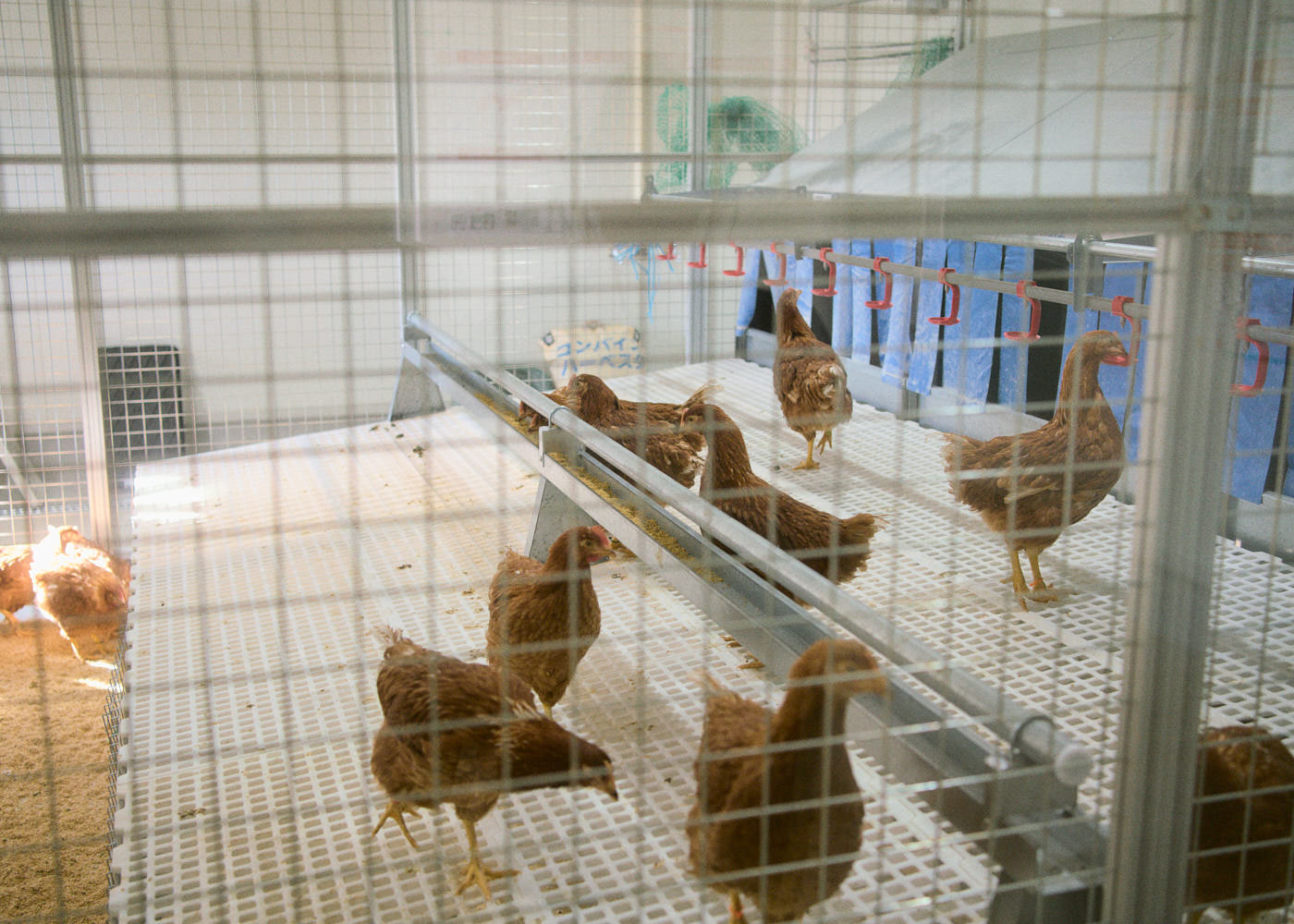 取材時は新しく鶏を搬入したばかり。慣らし期間が終わると、半屋外スペースにも自由に出入りする鶏の姿が見られます。