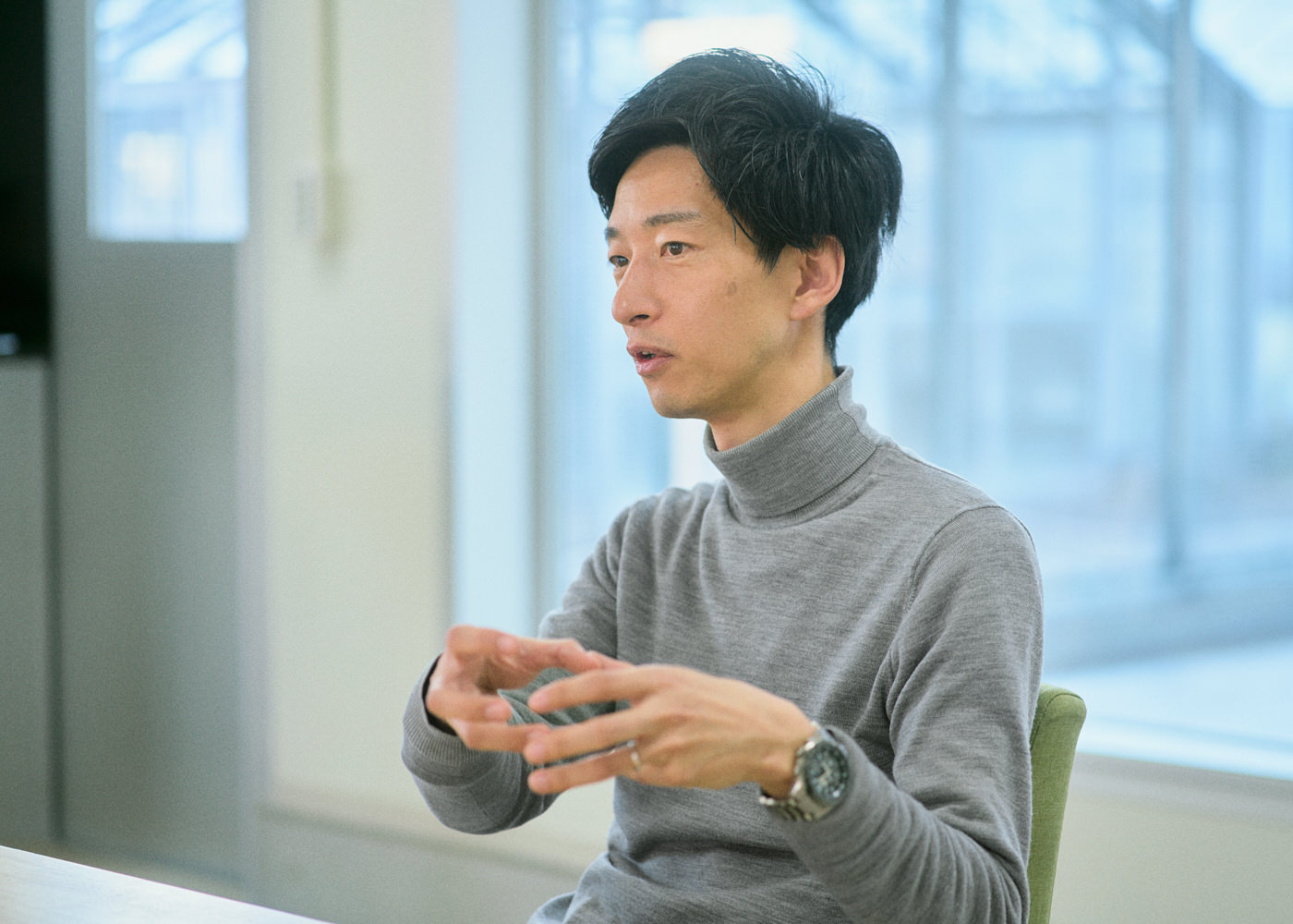「窓越しに鶏が自由に動き回っている姿が見えるからなのか、すごくポジティブな議論になるんです。アニマルウェルフェアは非常にセンシティブな問題で、ネガティブな方向に話が進むことも多いのですが、ここでは毎回、明るく前向きな話ばかりになる。すごく不思議です」。